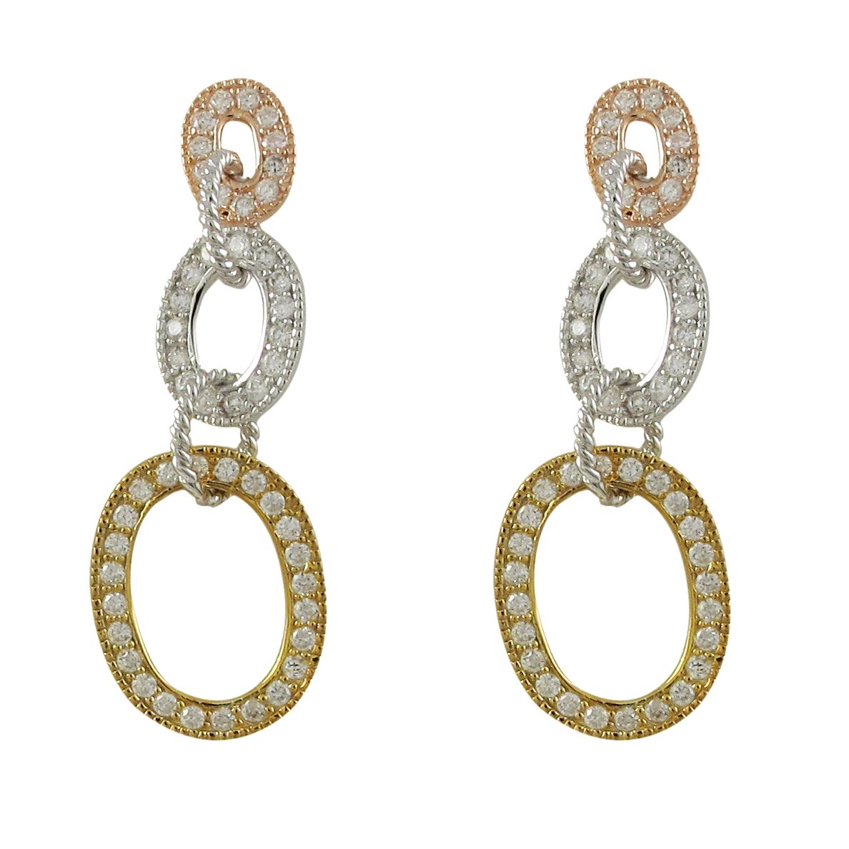 Sterling Silver Tri Color Triple Oval CZ Post Earrings 43M Long