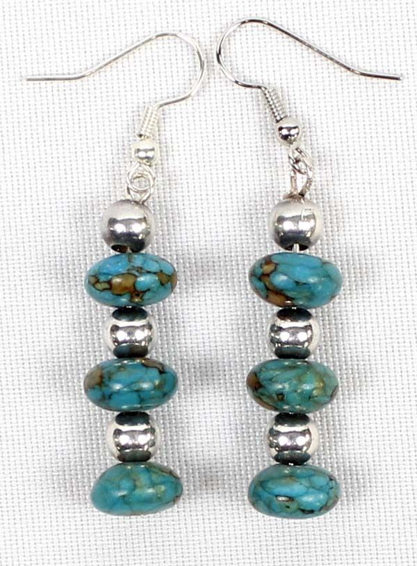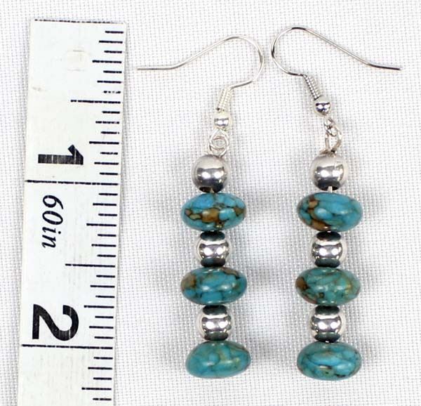 Sterling Silver & Turquoise Bead Earrings, measure .25'' x 2.25''L which includes the wire