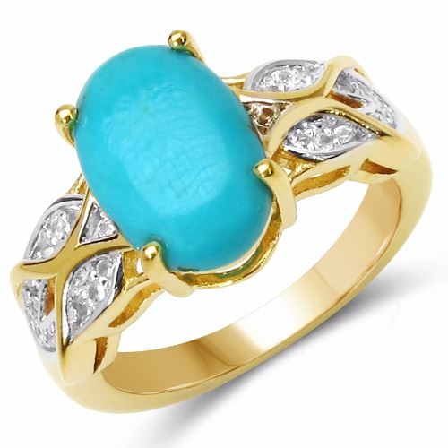 Turquoise Cabochon Oval 12x8mm - 1Pc + White Topaz Round 1.00mm - 24Pcs ( Center Stone Height : 2.50mm ) ( White Pan Rhodium )