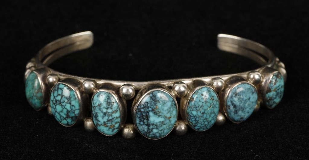 Round spider web turquoise cabs, signed "AB".