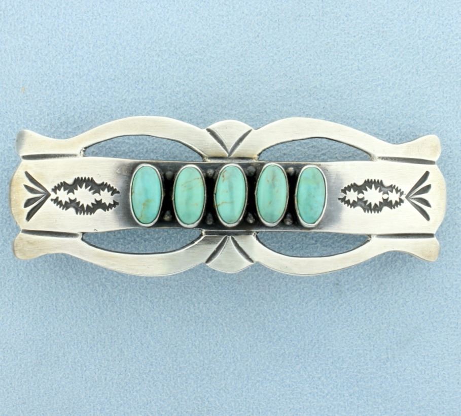 The clip is 3 inches long and contains five 10mm oval turquoise natural gemstones. 22.6g