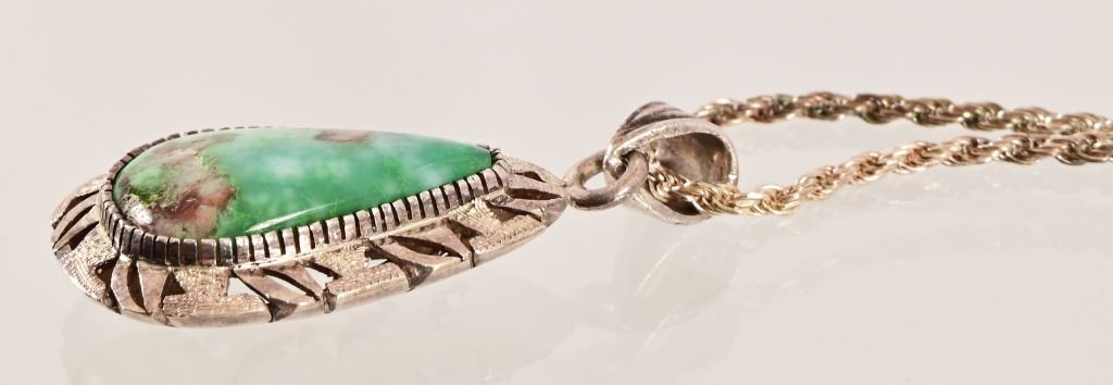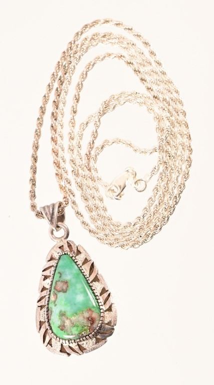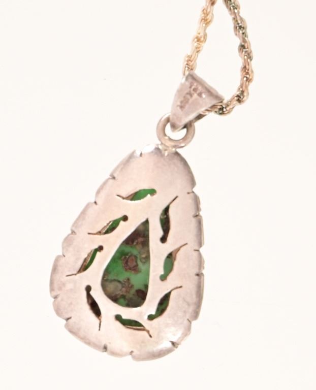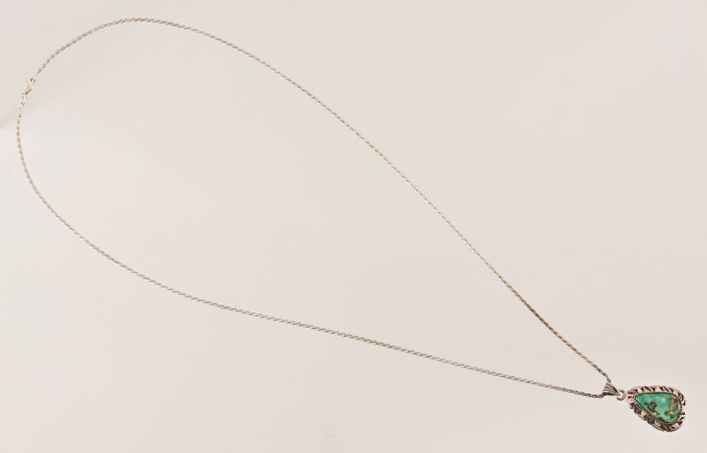 Mexico sterling silver turquoise pendant, 1" x 1.5", Italian sterling silver 30" chain