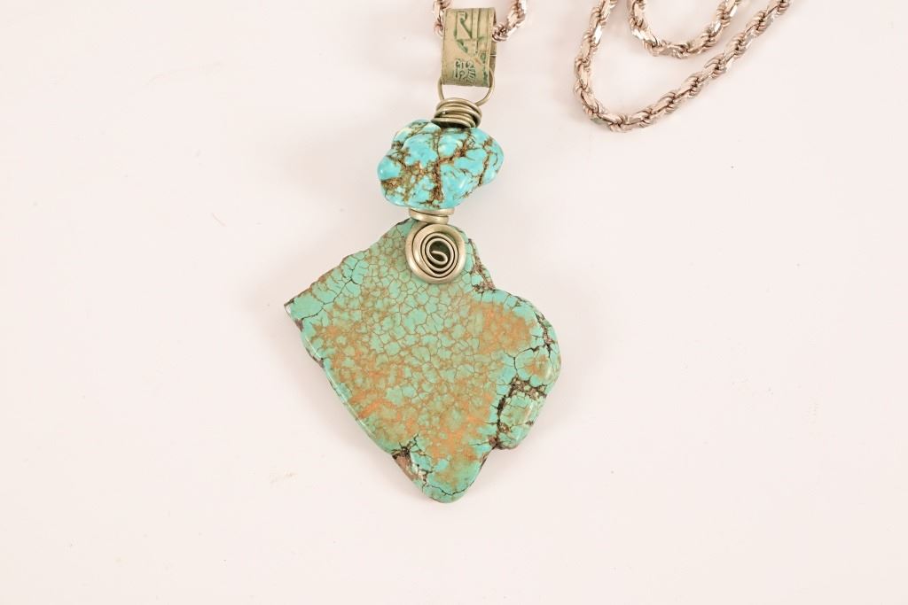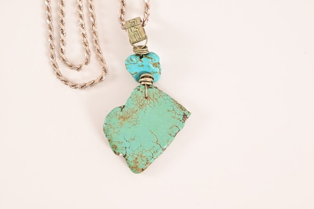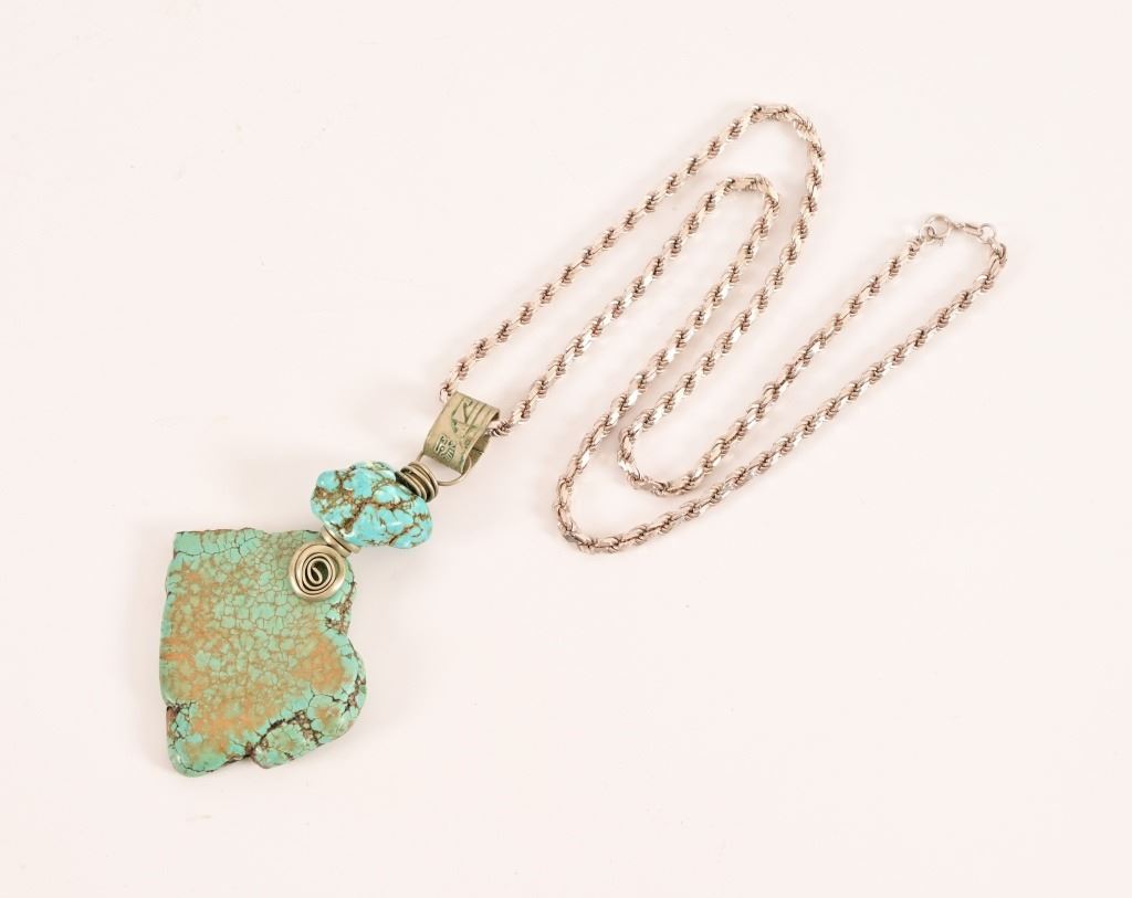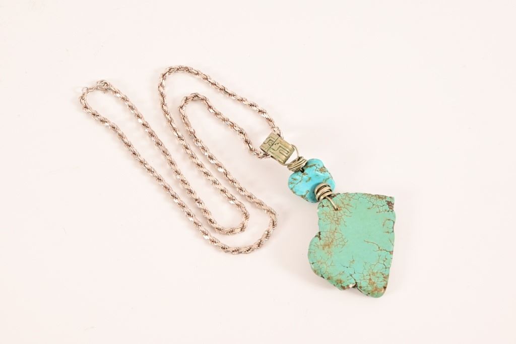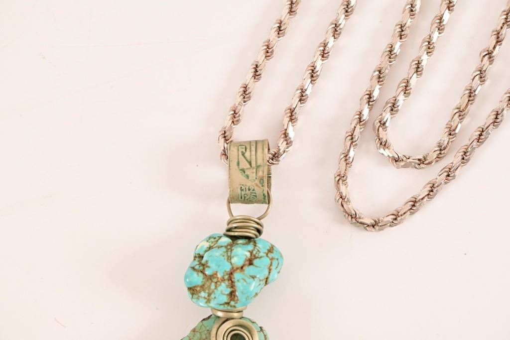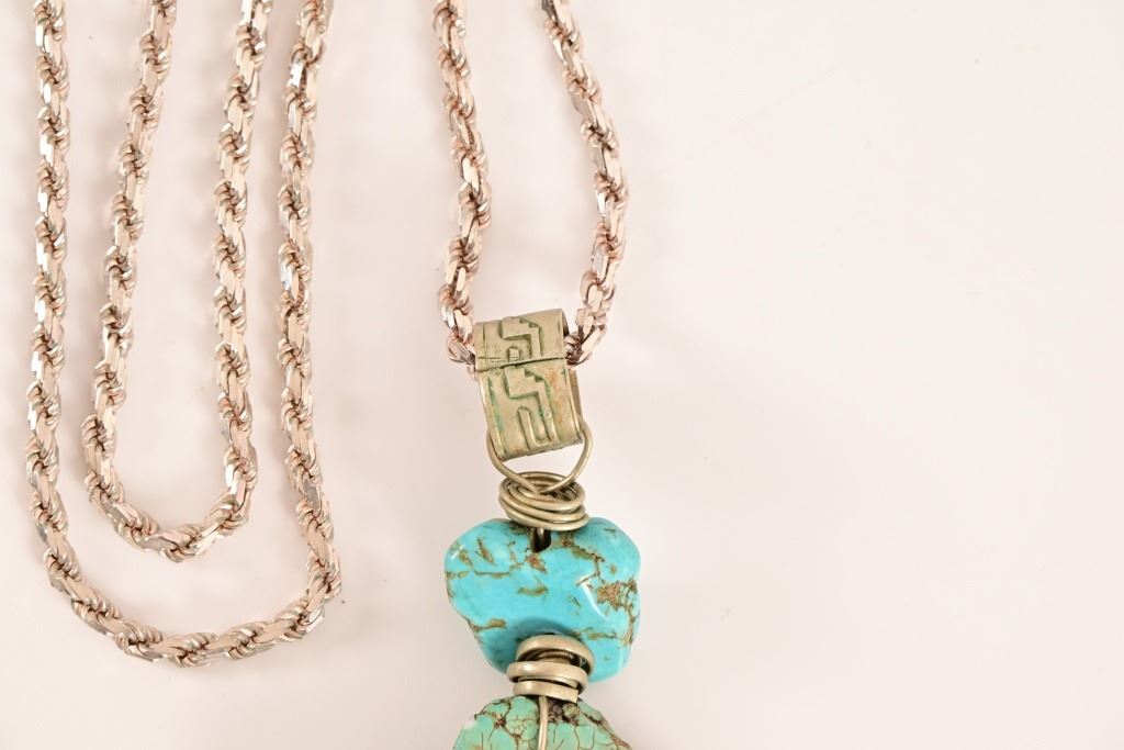 Pendant 2" x 3.75". Italian marked sterling 24" chain.