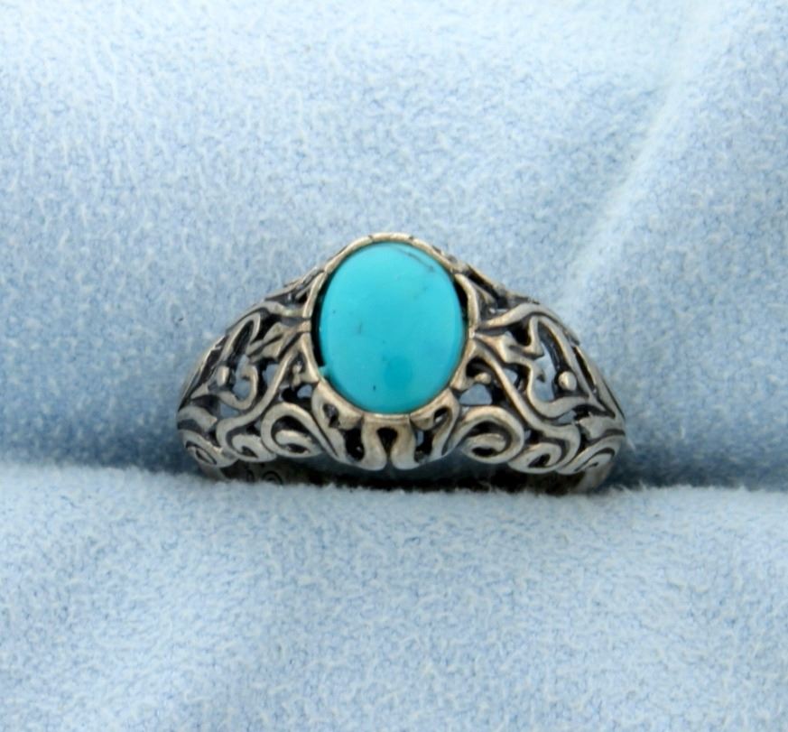 In sterling silver there is a 8x6 oval turquoise gemstone, this ring is a size 6 1/4 3.3g