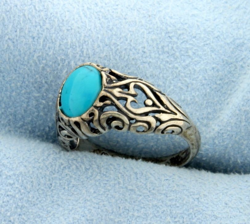 In sterling silver there is a 8x6 oval turquoise gemstone, this ring is a size 6 1/4 3.3g