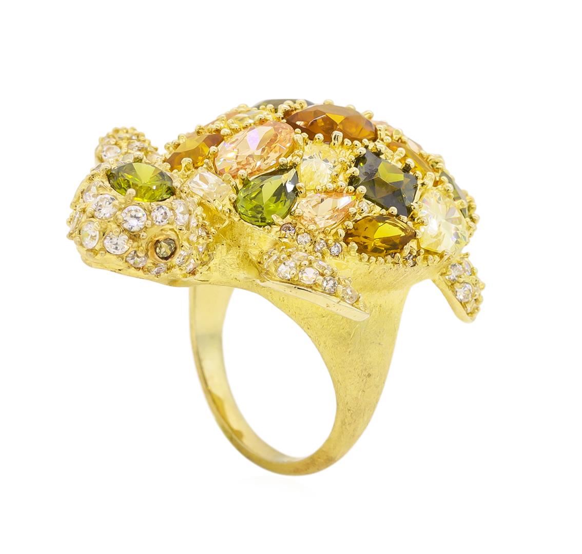 One of a kind high fashion sterling silver Turtle Ring weighing 15.1 grams. Containing: Cubic Zirconia, Multi-color Crystal. This sterling silver promises a lasting shine.