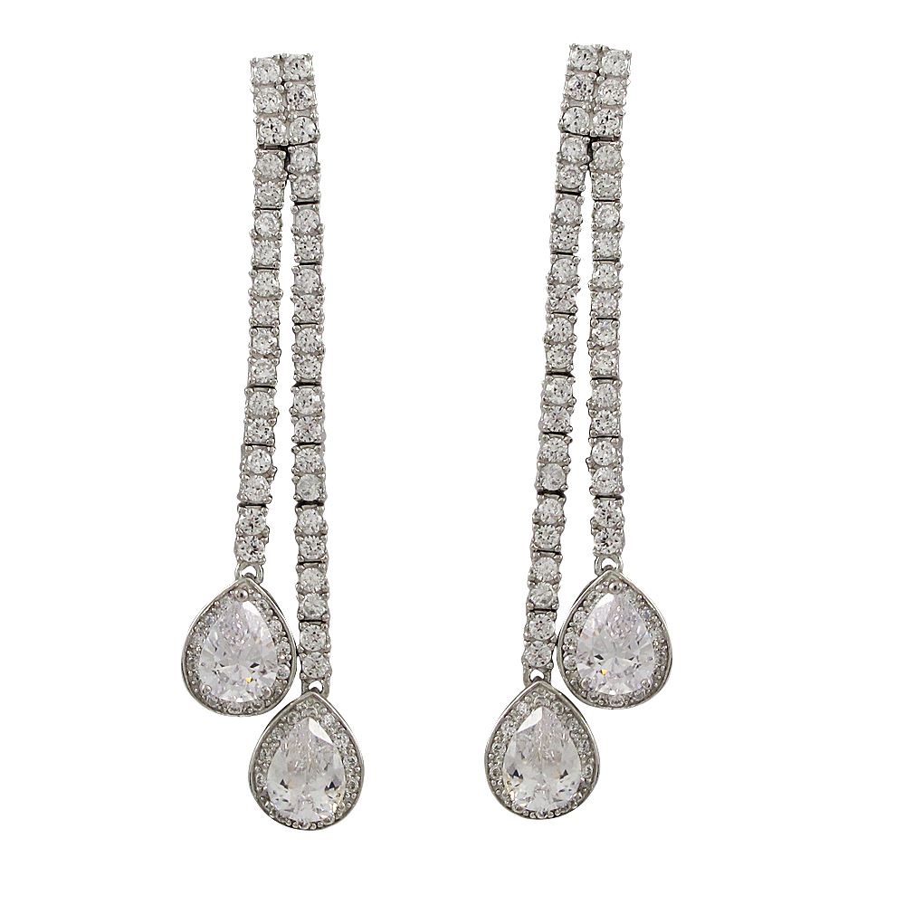 Sterling Silver Two Row With Teardrop CZ Post Earrings-60M Long
