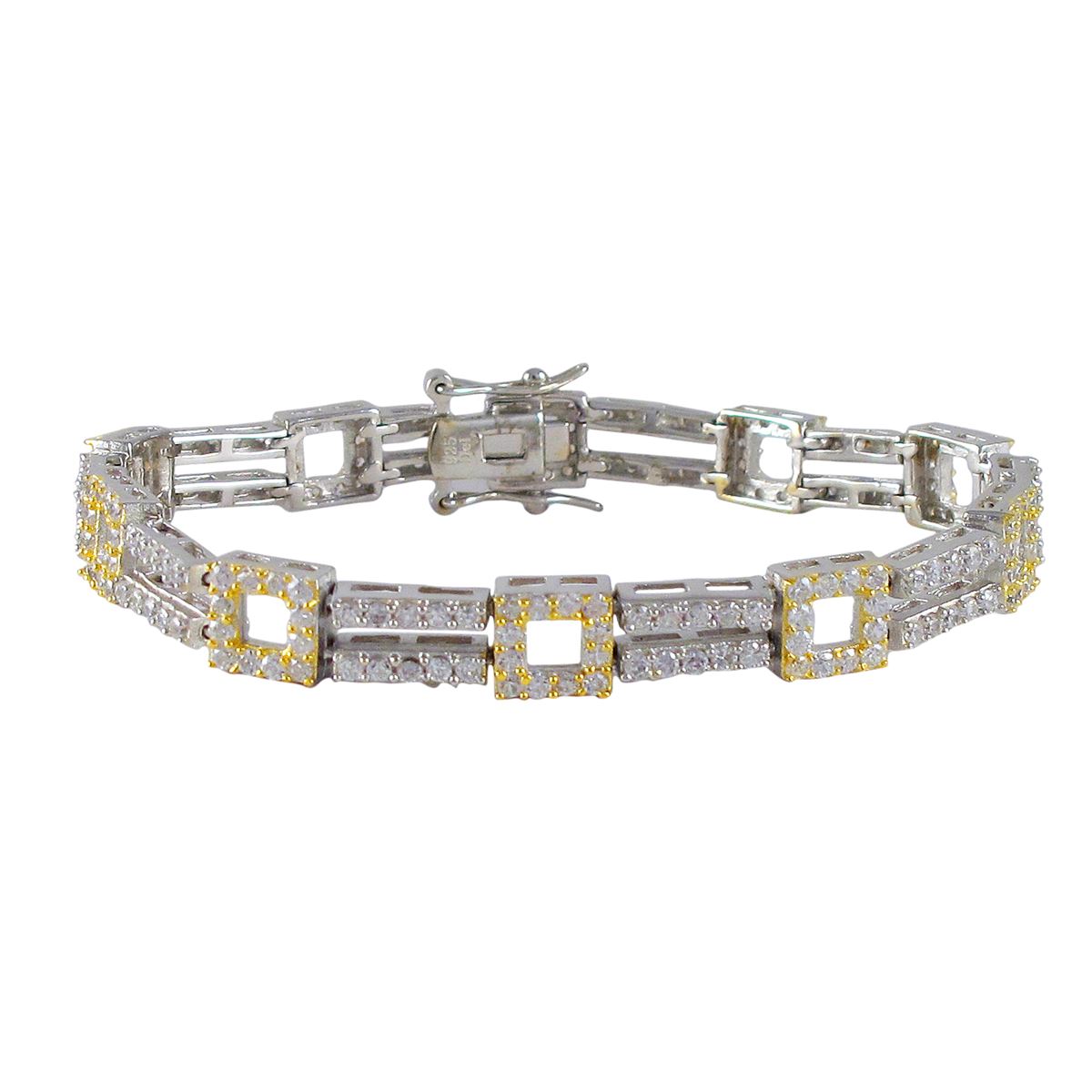Sterling Silver Two Tone CZ Bracelet -Two Row With Squares