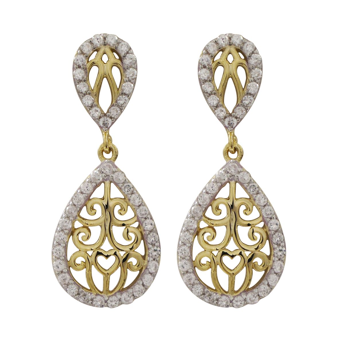 Sterling Silver Two Tone Filigree Teardrop Post Earrings With White CZ Border- 1.26"