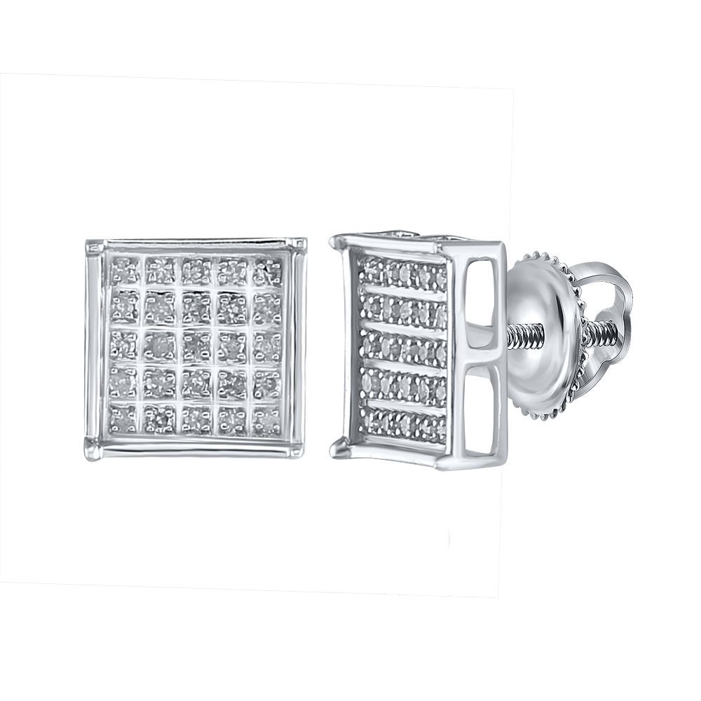 Sterling Silver Unisex Round Diamond Square Earrings 1/6 Cttw