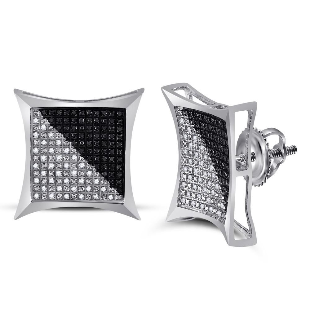 Sterling Silver Unisex Round Color Enhanced Black Diamo **|**|** Sterling Silver Unisex Round Color Enhanced Black Diamond Square Kite Cluster Earrings 1/2 Cttw
