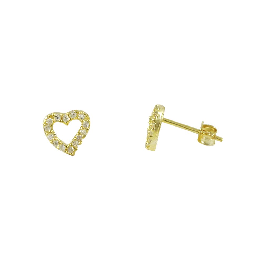 Sterling Silver Vermail Small Heart CZ Stud Earrings