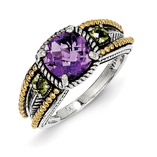 Sterling Silver w/14k Amethyst and Peridot Ring