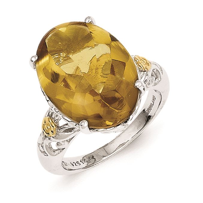 Sterling Silver w/14k Whiskey Quartz Ring