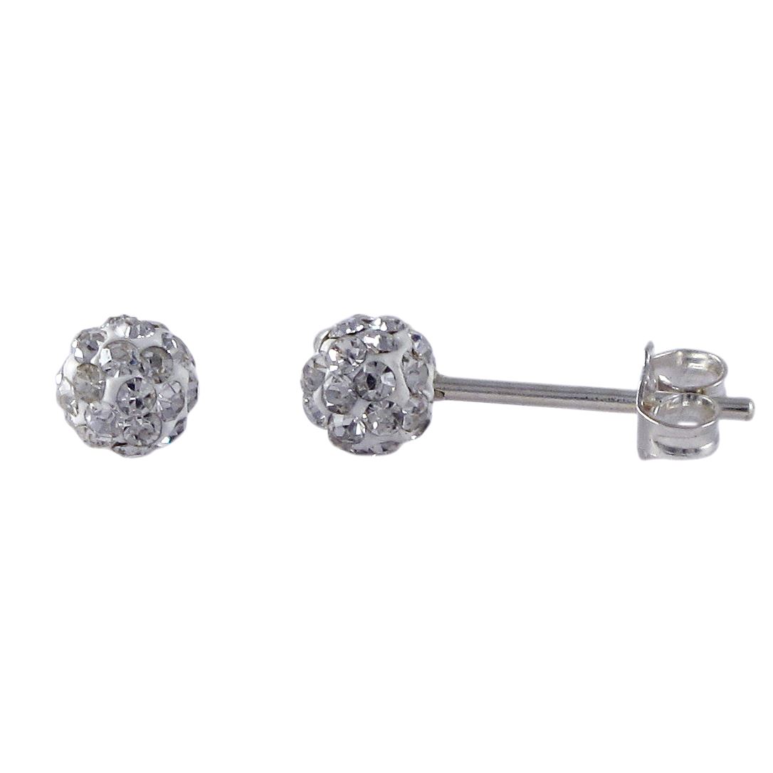 Sterling Silver White 4Mm Crystal Ball Post Stud Earrings