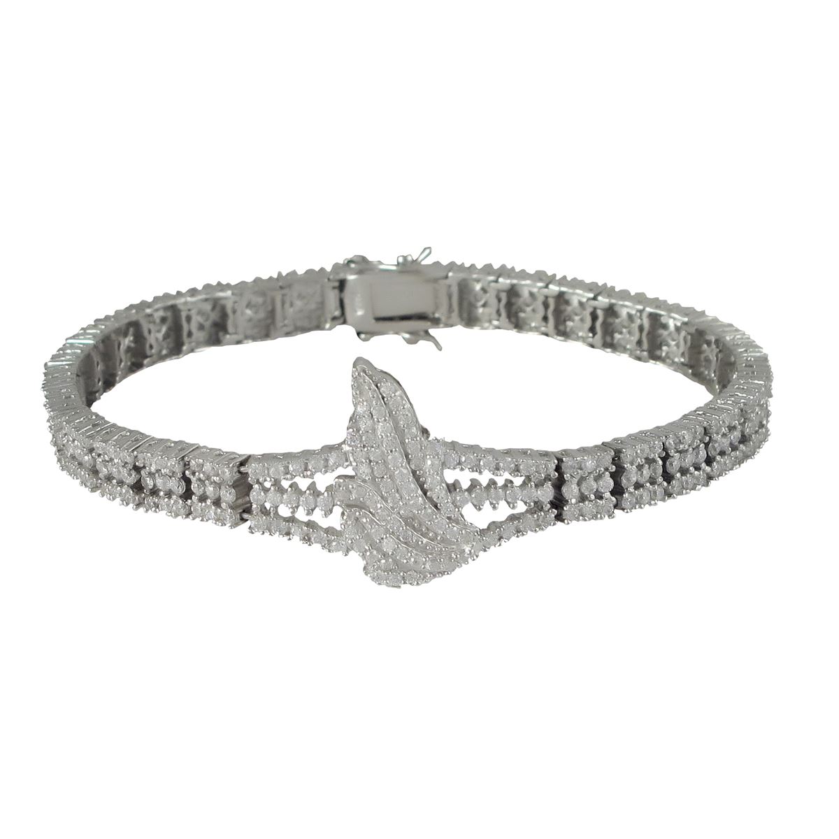 Sterling Silver White CZ Tennis Style Bracelet With Center Design
