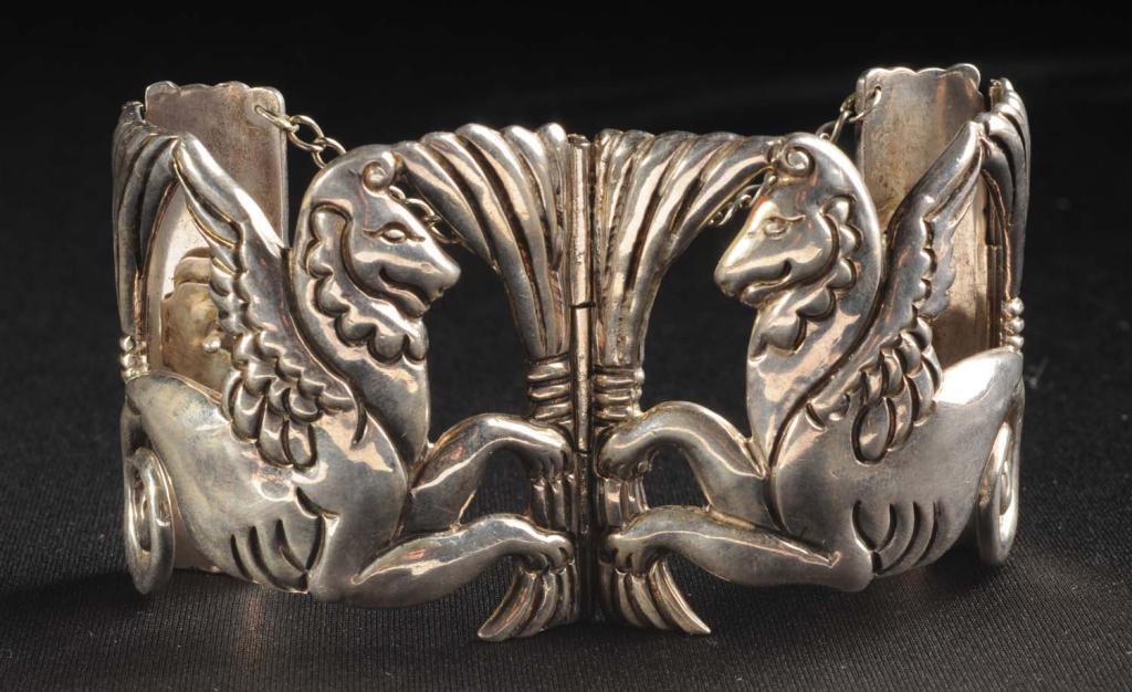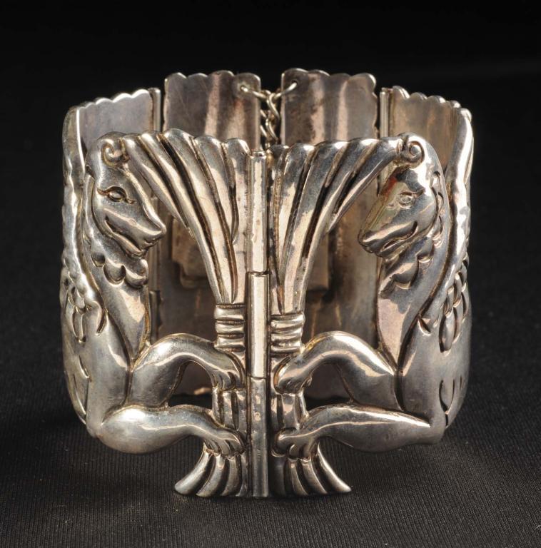 Circa 1945 to 1950. By Los Castillo. Mexican silver. Jewelry Condition (Excellent). Size 2 - 1/4" Dia.