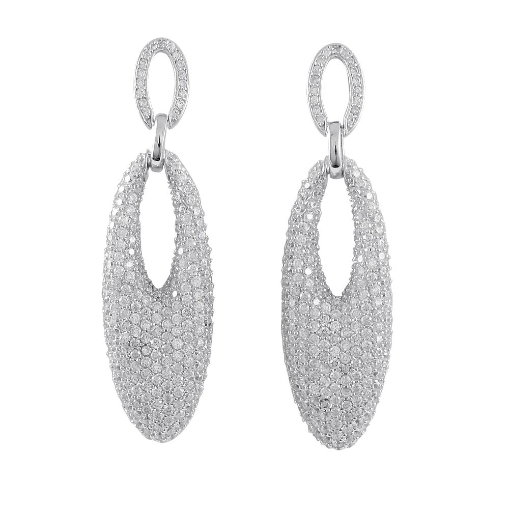 Sterling Silver With CZ, Oval Hanging On Post Earrings-55M Long
