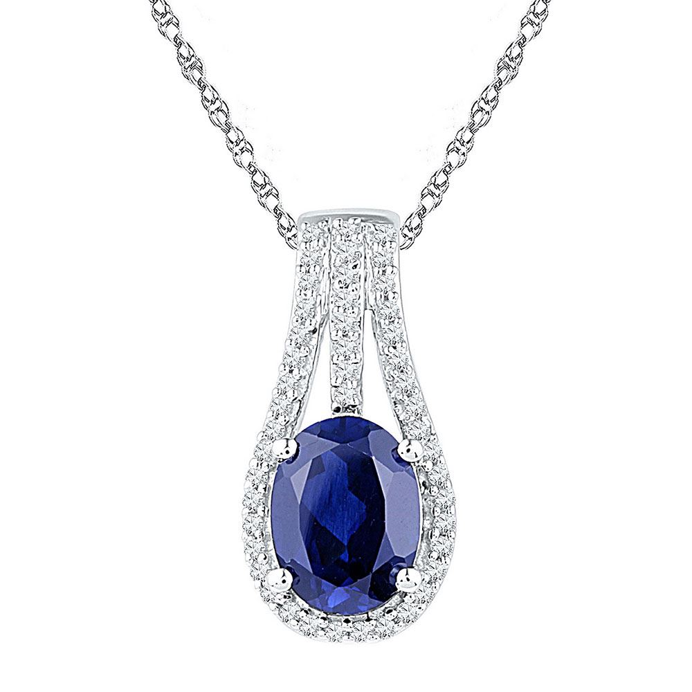 Sterling Silver Womens Oval Lab-Created Blue Sapphire Solitaire Pendant 1-3/4 Cttw