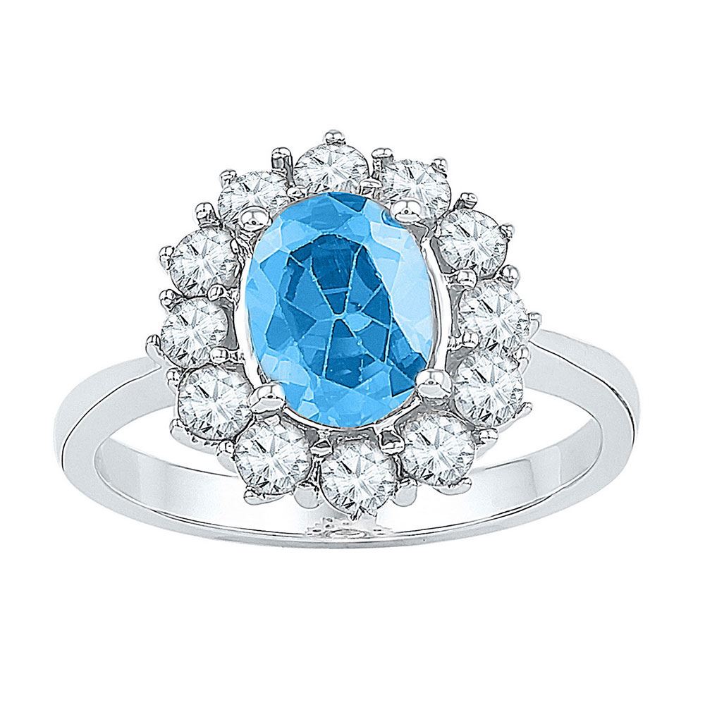 Sterling Silver Womens Oval Lab-Created Blue Topaz Solitaire Ring 3-1/5 Cttw