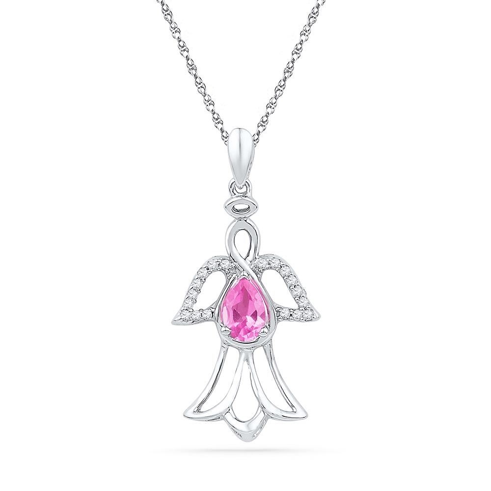 Sterling Silver Womens Oval Lab-Created Pink Sapphire D **|**|** Sterling Silver Womens Oval Lab-Created Pink Sapphire Diamond Angel Pendant 5/8 Cttw