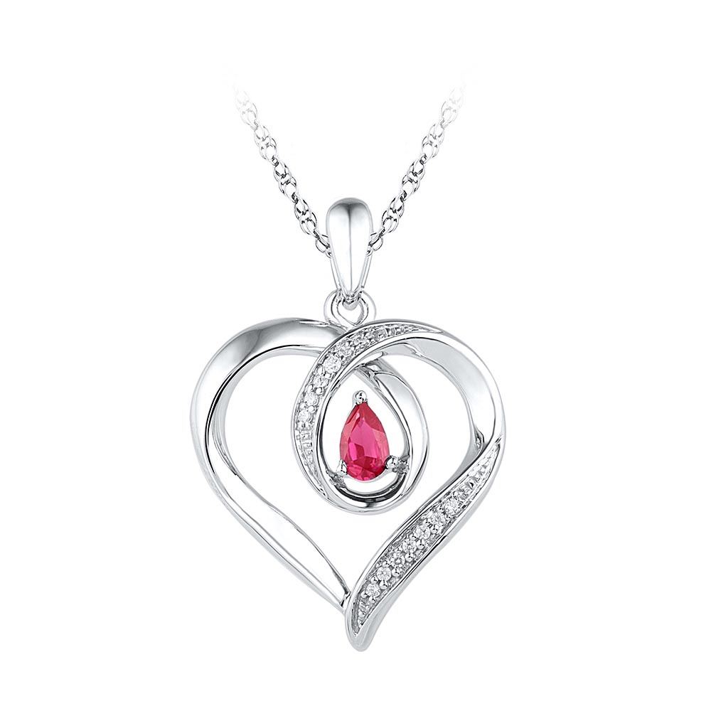 Sterling Silver Womens Pear Lab-Created Ruby Heart Love **|**|** Sterling Silver Womens Pear Lab-Created Ruby Heart Love Pendant 1/4 Cttw 101394