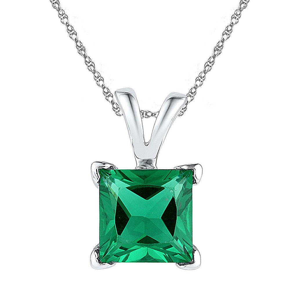 Sterling Silver Womens Princess Lab-Created Emerald Solitaire Pendant 1-1/3 Cttw