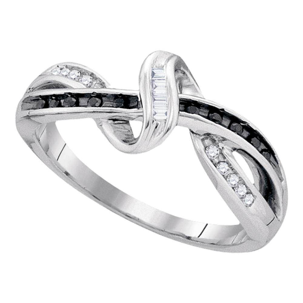 Sterling Silver Womens Round Black Color Enhanced Diamond Crossover Band Ring 1/8 Cttw