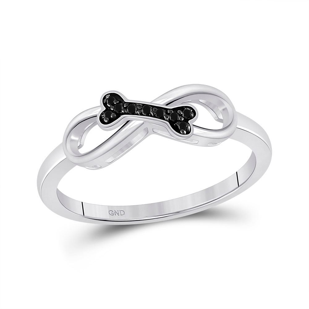 Sterling Silver Womens Round Black Color Enhanced Diamond Dog Bone Infinity Ring 1/20 Cttw