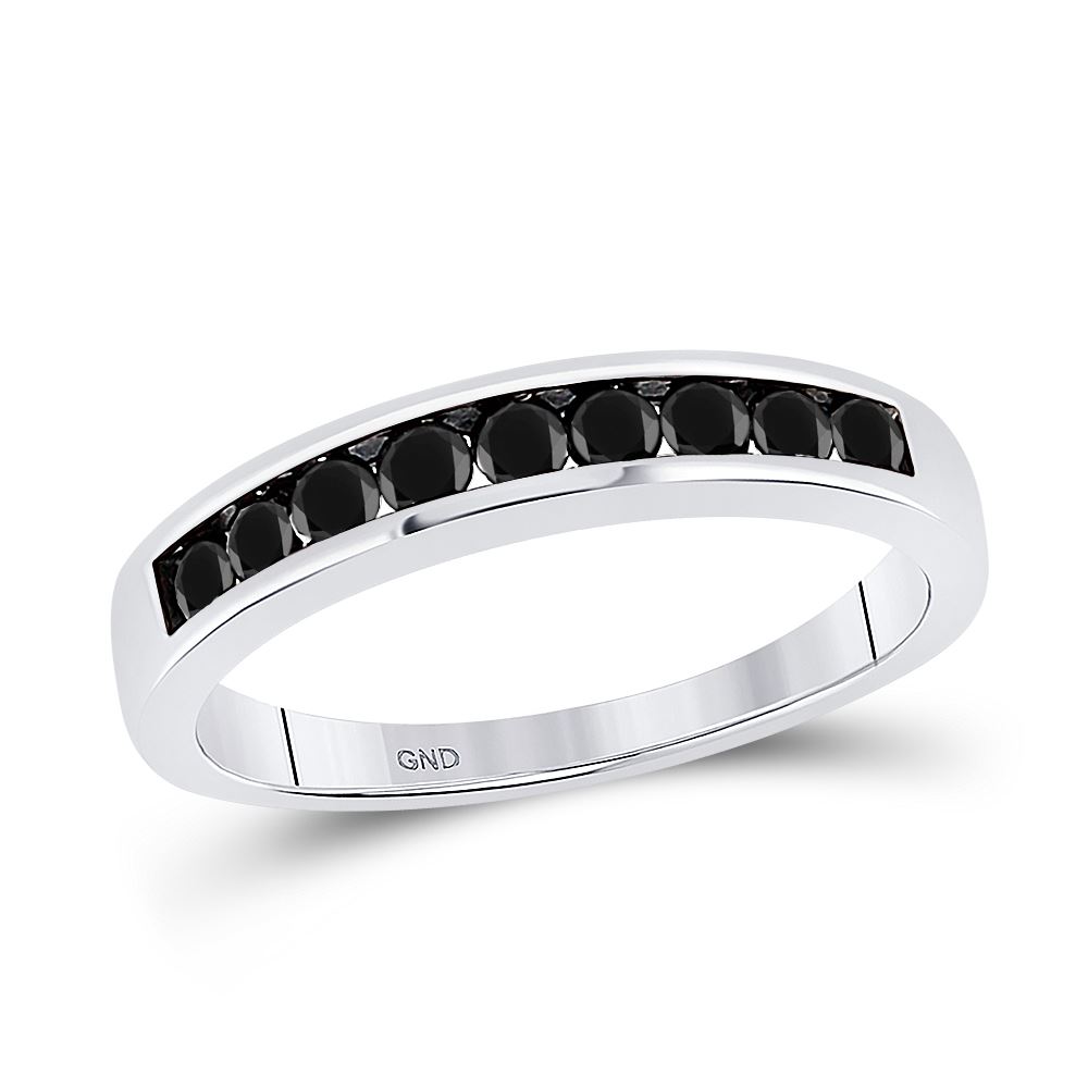 Sterling Silver Womens Round Black Color Enhanced Single Row Diamond Band Ring 1/2 Cttw