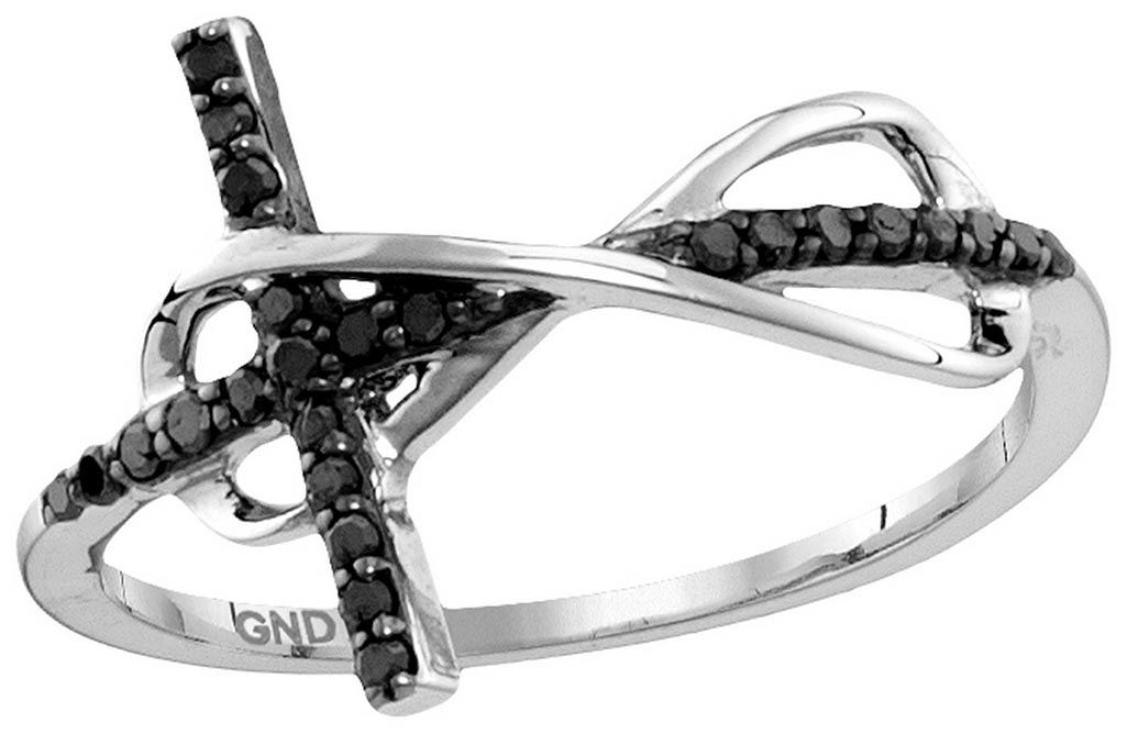 Sterling Silver Womens Round Black Colored Diamond Cros **|**|** Sterling Silver Womens Round Black Colored Diamond Cross Infinity Ring 1/10 Cttw