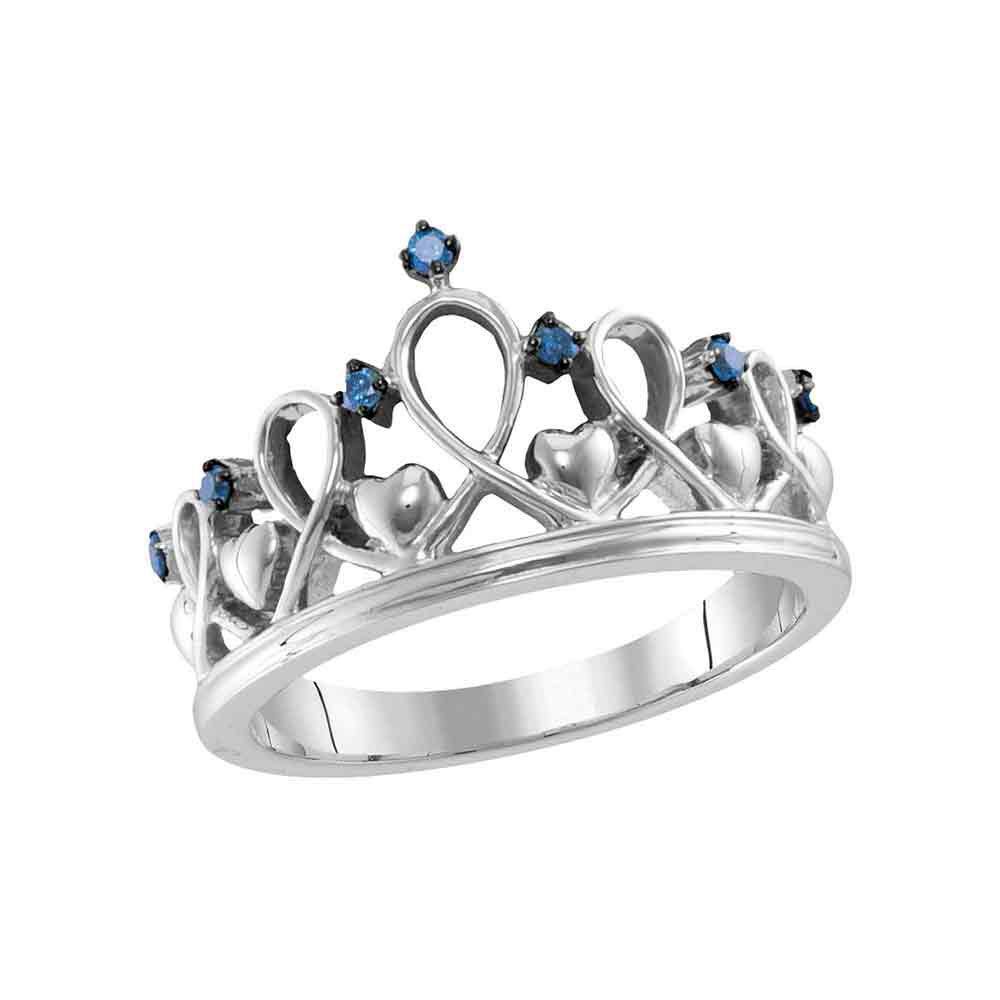 Sterling Silver Womens Round Blue Color Enhanced Diamond Crown Tiara Ring 1/12 Cttw