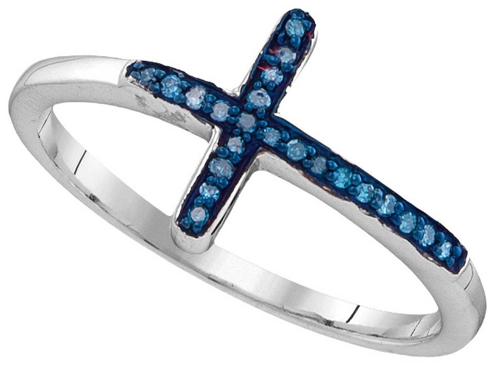 Sterling Silver Womens Round Blue Colored Diamond Chris **|**|** Sterling Silver Womens Round Blue Colored Diamond Christian Cross Cluster Fashion Ring 1/20 Cttw