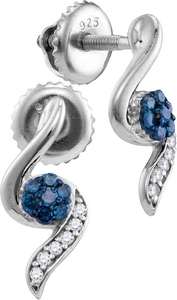 Sterling Silver Womens Round Blue Colored Diamond Clust **|**|** Sterling Silver Womens Round Blue Colored Diamond Cluster Stud Earrings 1/5 Cttw