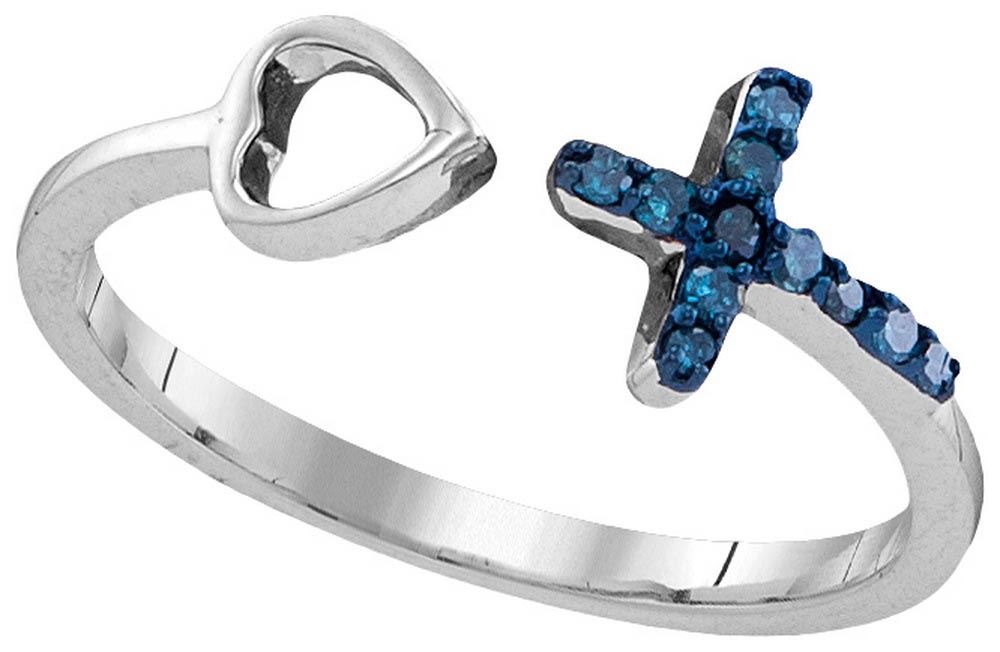 Sterling Silver Womens Round Blue Colored Diamond Cross **|**|** Sterling Silver Womens Round Blue Colored Diamond Cross Heart Fashion Band Ring 1/10 Cttw