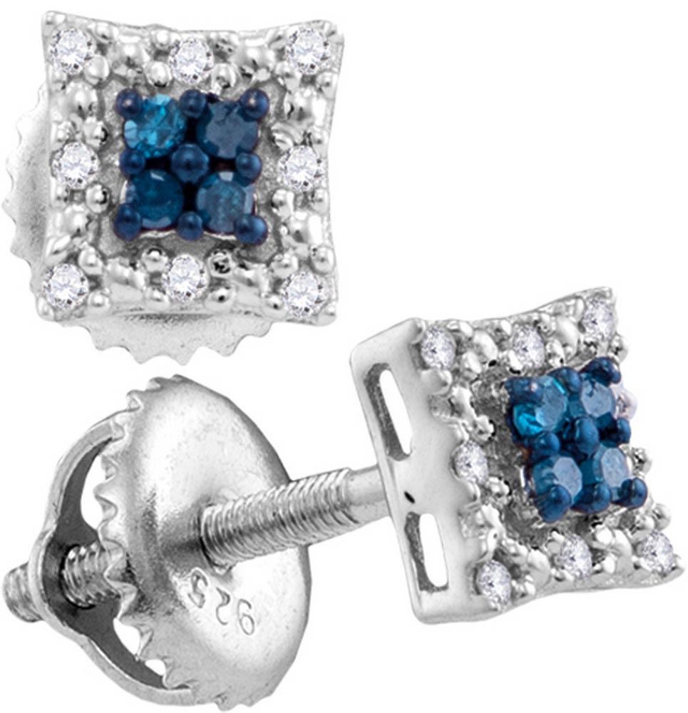 Sterling Silver Womens Round Blue Colored Diamond Squar **|**|** Sterling Silver Womens Round Blue Colored Diamond Square Cluster Screwback Earrings 1/10 Cttw