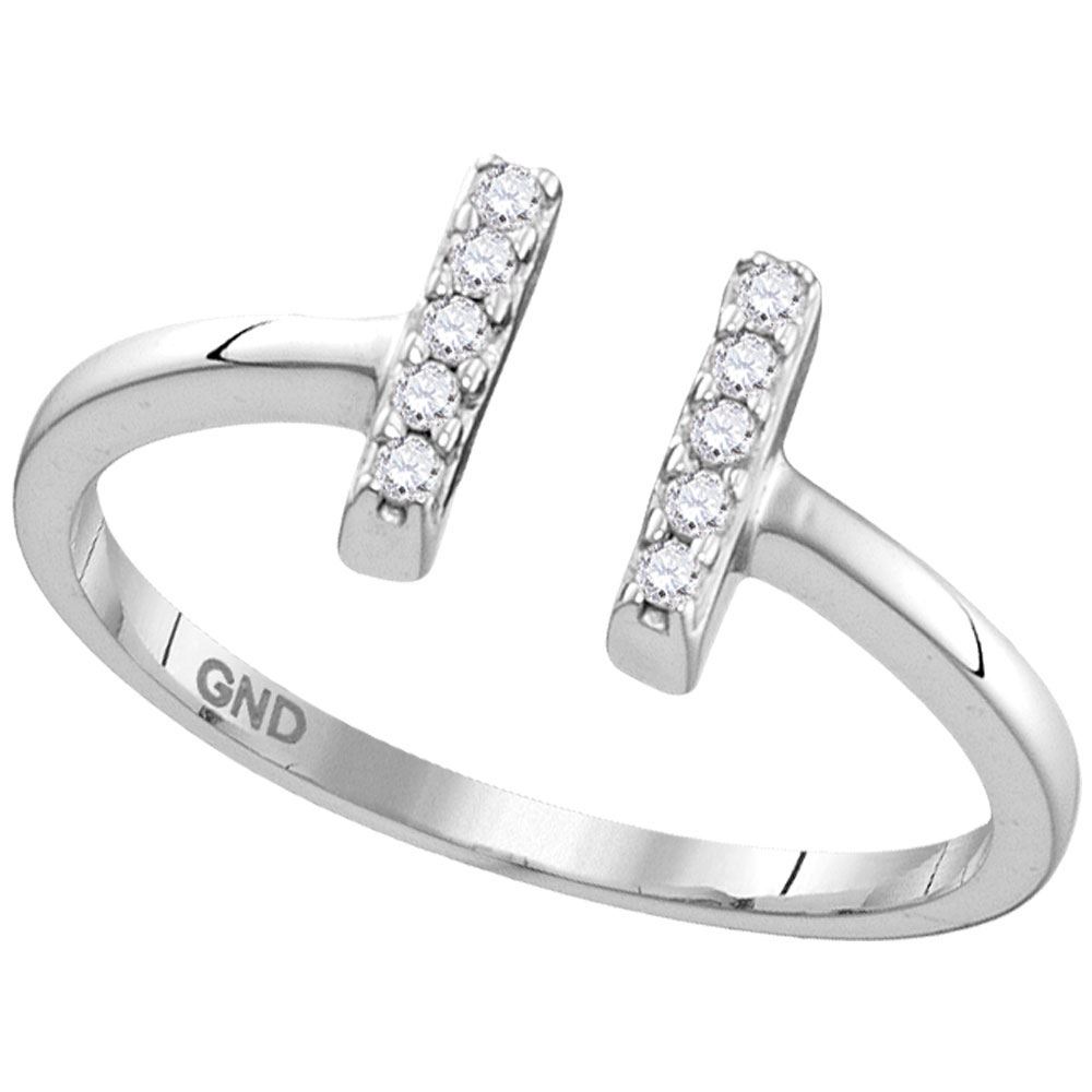 Sterling Silver Womens Round Diamond Bisected Parallel Bar Band Ring 1/10 Cttw