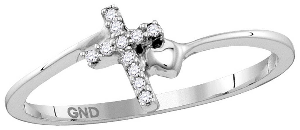 Sterling Silver Womens Round Diamond Delicate Slender C **|**|** Sterling Silver Womens Round Diamond Delicate Slender Cross Religious Ring 1/20 Cttw