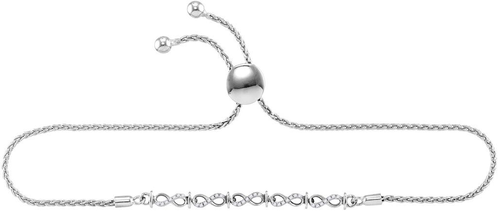 Sterling Silver Womens Round Diamond Infinity Link Bolo **|**|** Sterling Silver Womens Round Diamond Infinity Link Bolo Adjustable Bracelet 1/6 Cttw