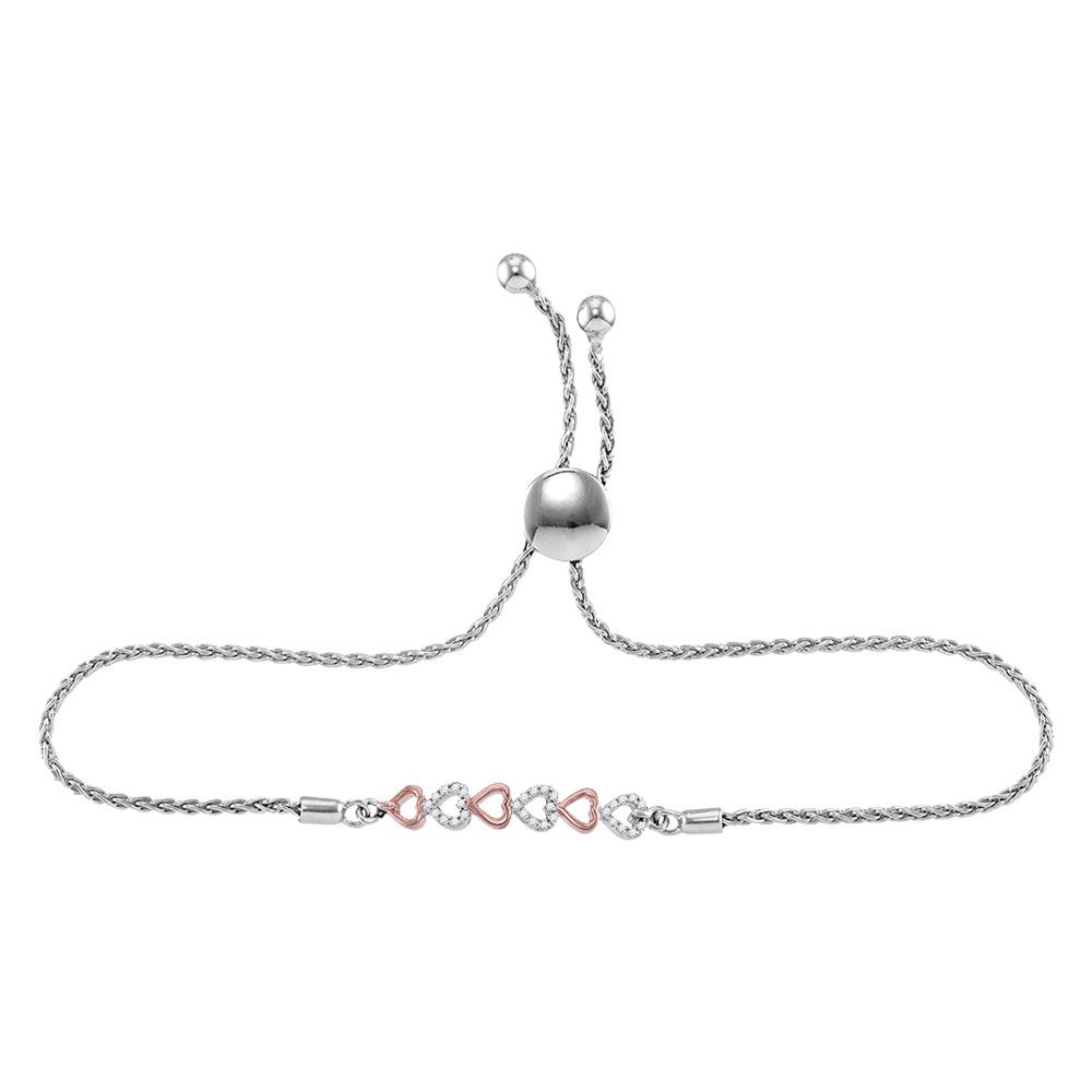 Sterling Silver Womens Round Diamond Linked Heart Bracelet 1/10 Cttw