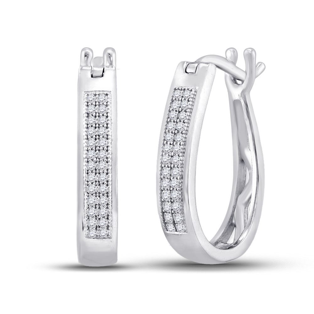 Sterling Silver Womens Round Diamond Oblong Double Row Hoop Earrings 1/6 Cttw