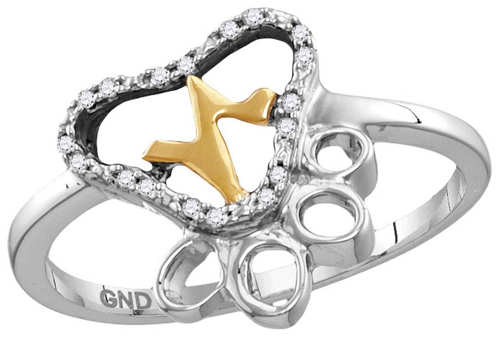 Sterling Silver Womens Round Diamond Paw Print Yellow-t **|**|** Sterling Silver Womens Round Diamond Paw Print Yellow-tone Heartbeat Cluster Ring 1/20 Cttw