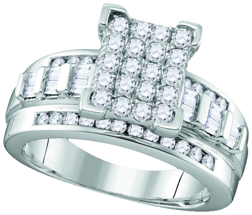 Sterling Silver Womens Round Diamond Rectangle Cluster **|**|** Sterling Silver Womens Round Diamond Rectangle Cluster Bridal Wedding Engagement Ring 1.00 Cttw