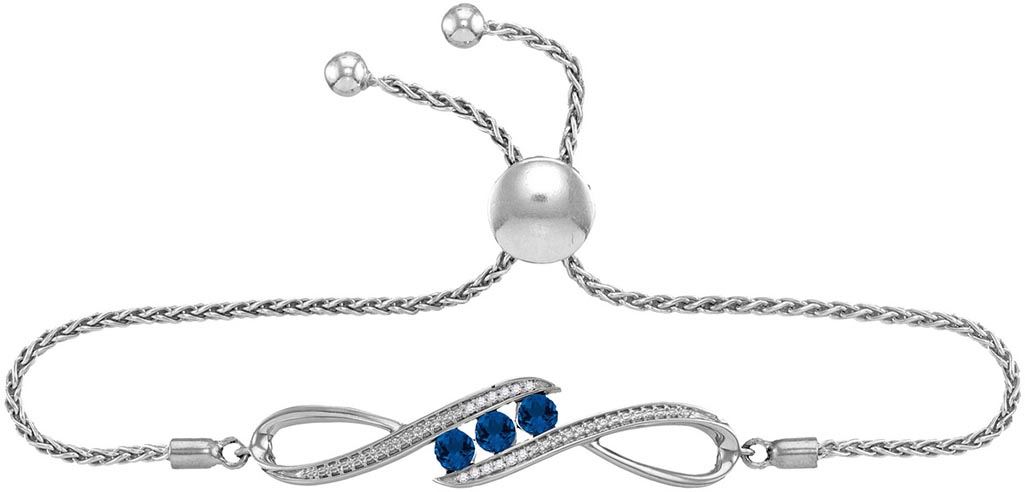 Sterling Silver Womens Round Lab-Created Blue Sapphire **|**|** Sterling Silver Womens Round Lab-Created Blue Sapphire Bolo Fashion Bracelet 1/2 Cttw