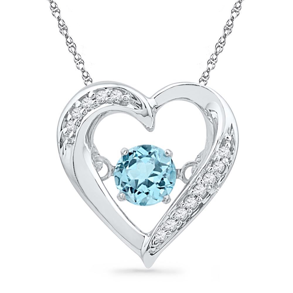 Sterling Silver Womens Round Lab-Created Blue Topaz Mov **|**|** Sterling Silver Womens Round Lab-Created Blue Topaz Moving Twinkle Solitaire Heart Pendant 1/3 Cttw
