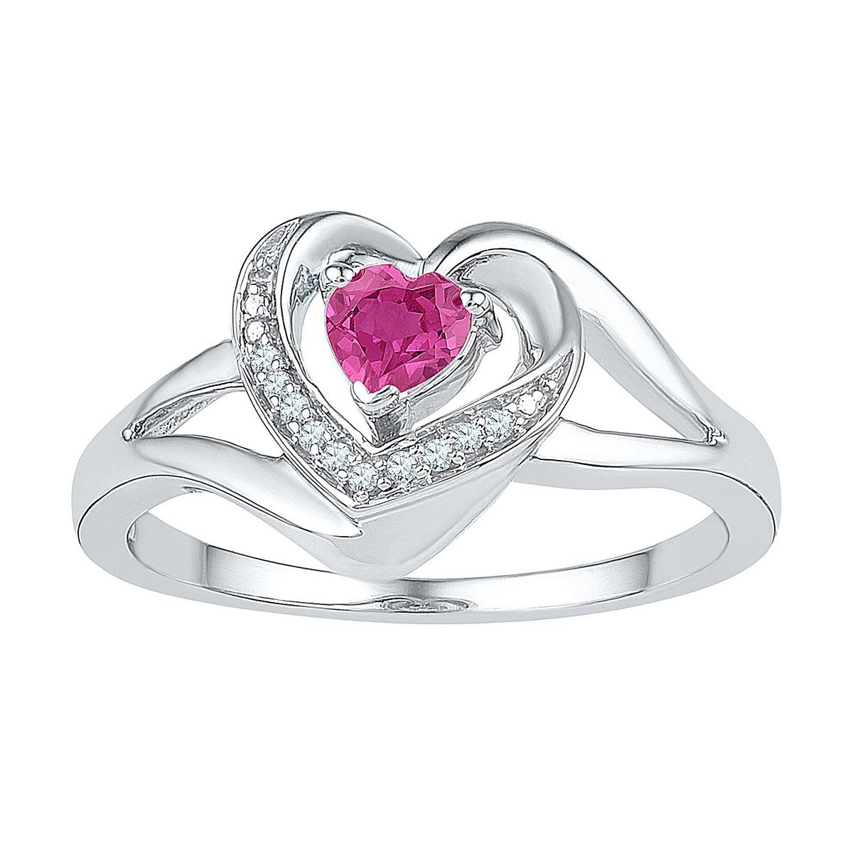 Sterling Silver Womens Round Lab-Created Pink Sapphire **|**|** Sterling Silver Womens Round Lab-Created Pink Sapphire Diamond Heart Ring 3/8 Cttw