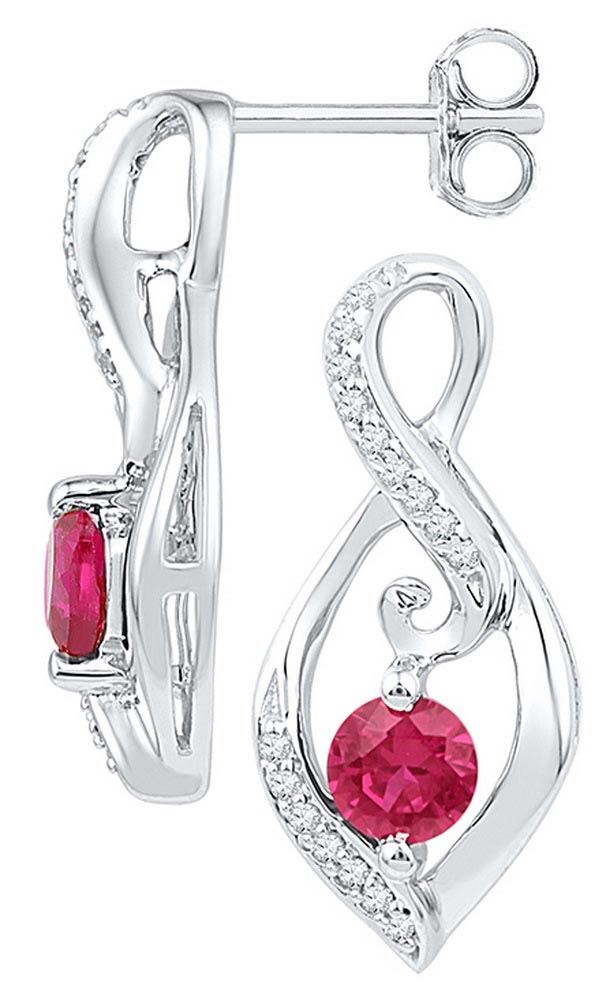 Sterling Silver Womens Round Lab-Created Ruby Diamond I **|**|** Sterling Silver Womens Round Lab-Created Ruby Diamond Infinity Screwback Earrings 1/10 Cttw