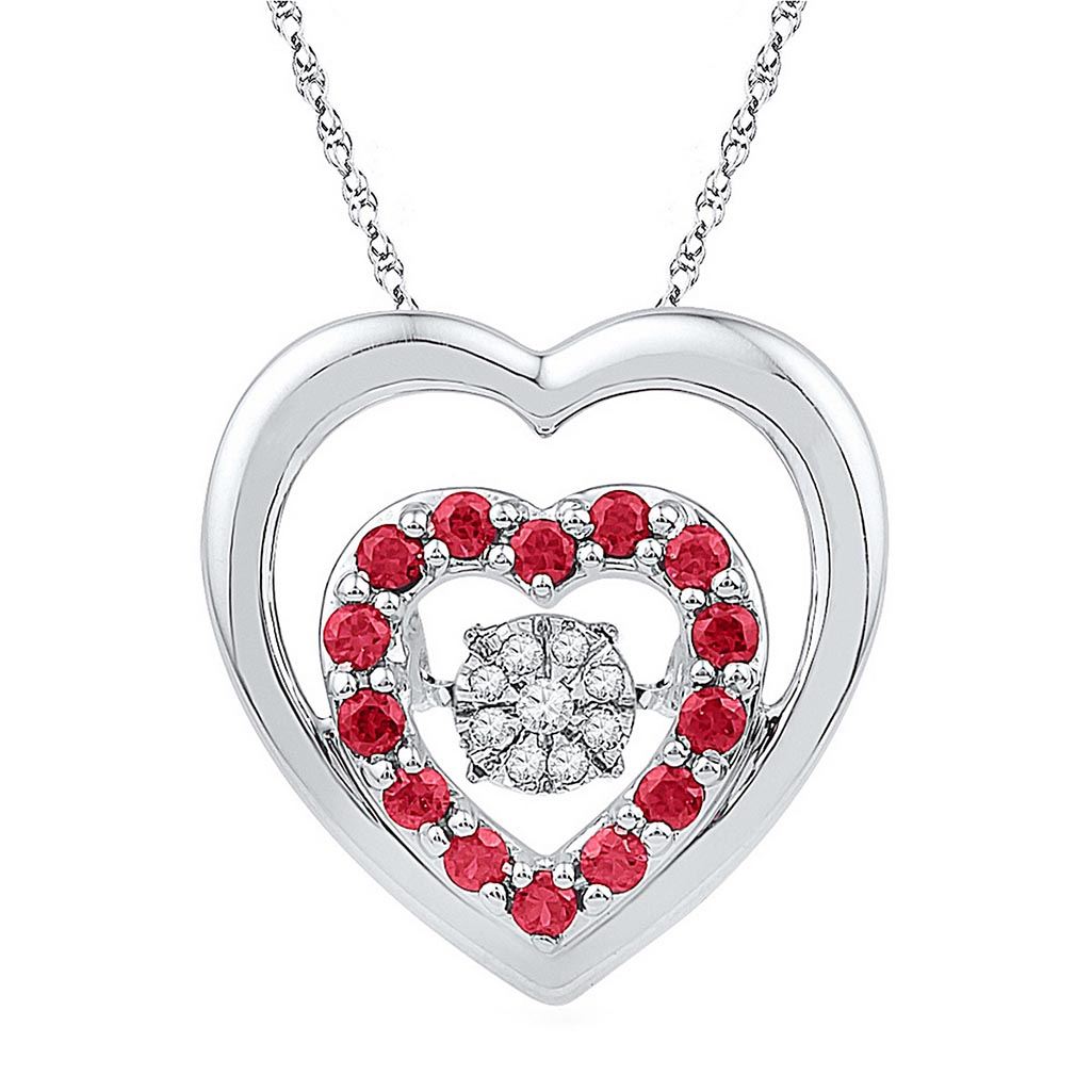 Sterling Silver Womens Round Lab-Created Ruby Heart Mov **|**|** Sterling Silver Womens Round Lab-Created Ruby Heart Moving Twinkle Diamond Cluster Pendant 1/2 Cttw