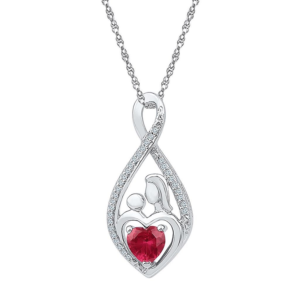 Sterling Silver Womens Round Lab-Created Ruby Mom Mothe **|**|** Sterling Silver Womens Round Lab-Created Ruby Mom Mother Child Diamond Pendant 3/4 Cttw