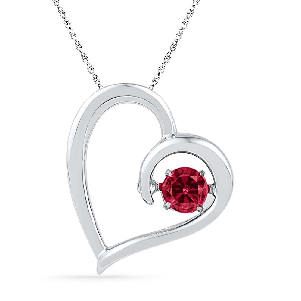 Sterling Silver Womens Round Moving Twinkle Lab-Created **|**|** Sterling Silver Womens Round Moving Twinkle Lab-Created Ruby Heart Pendant 1/5 Cttw